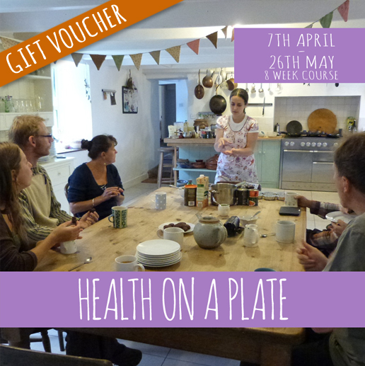 Gift voucher for our HEALTH ON A PLATE – 8 Week course, taking place Every Friday 6pm – 8:30pm – 7th April – 26th May 2017.